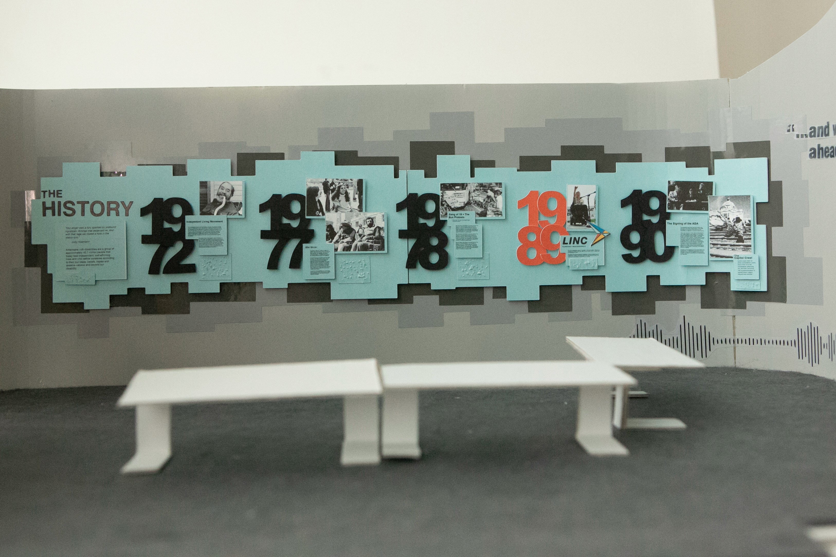 LINC Idaho is a nonprofit organization in Boise, Idaho run by those in the disabled community for those in the disabled community. Aiming to empower and inspire their audience to live independently, I worked with them to design a conference room that showcased their history and the 16 counties they represent.